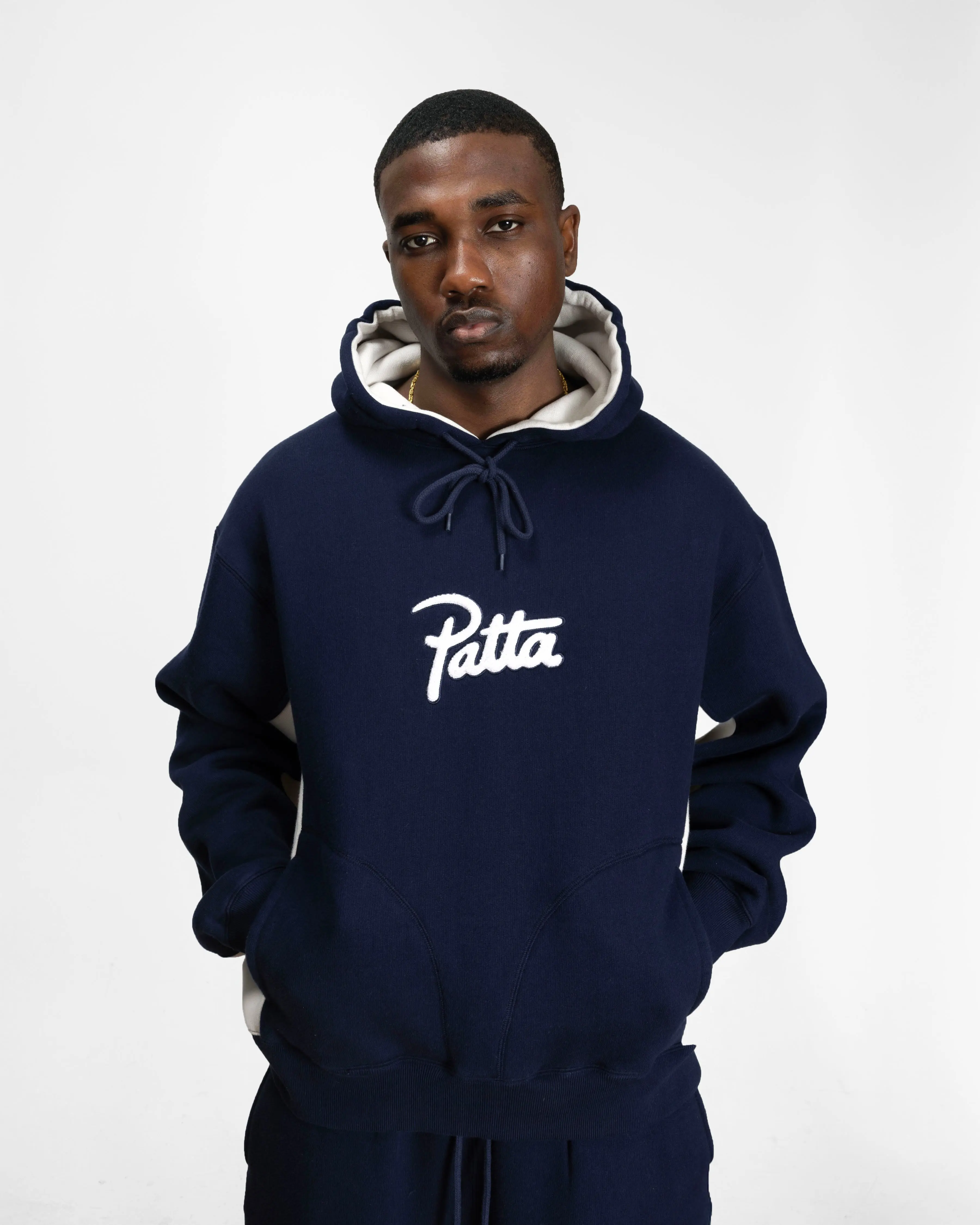 The Patta Chenille Logo Hooded Sweater is a new take on our classic hooded sweater. Made from a blend of 82% Cotton and 18% Polyester this fleece jogger fabric will keep you super comfortable with its relaxed fit. Detailed with a Chenille Patta graphic on the chest and contrasting panelling along the sides. Perfect for everyday wear, whether you're lounging or stepping out.